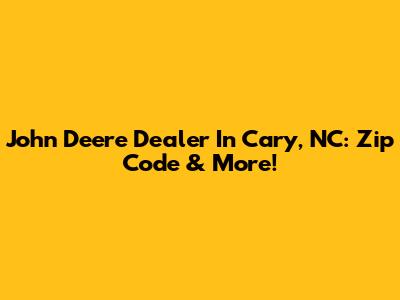 John Deere Dealer In Cary, NC: Zip Code & More!