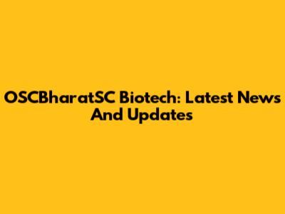 OSCBharatSC Biotech: Latest News And Updates