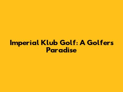 Imperial Klub Golf: A Golfer's Paradise