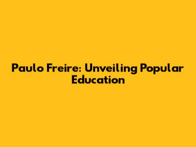 Paulo Freire: Unveiling Popular Education