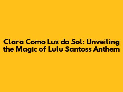 Hey music lovers! Ever found yourself humming a tune that just seems to brighten your day? For many, that song is undoubtedly "Clara Como Luz do Sol" by the one and only Lulu Santos. This track isn't just a song; it's an experience, a burst of sunshine bottled into a melody. Today, we're diving deep into the heart of this iconic Brazilian hit, exploring its origins, its impact, and why it continues to resonate with audiences across generations. So, grab your headphones, get comfy, and let's explore the world of "Clara Como Luz do Sol"!