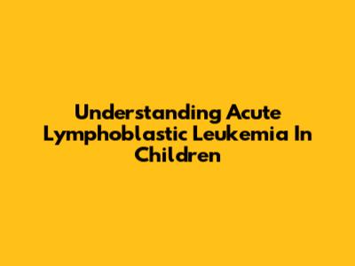 Understanding Acute Lymphoblastic Leukemia In Children
