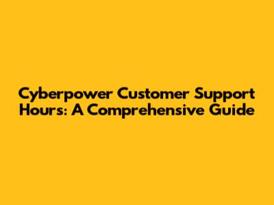 Cyberpower Customer Support Hours: A Comprehensive Guide