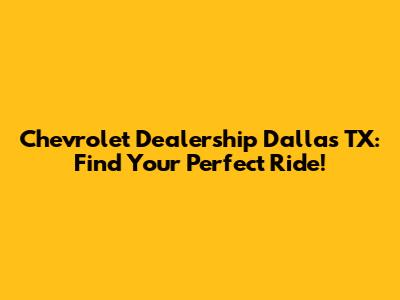 Chevrolet Dealership Dallas TX: Find Your Perfect Ride!
