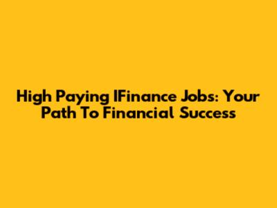 High Paying IFinance Jobs: Your Path To Financial Success