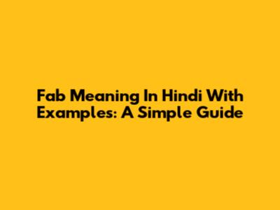 Fab Meaning In Hindi With Examples: A Simple Guide