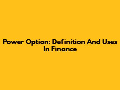 Power Option: Definition And Uses In Finance