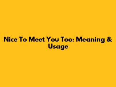 Nice To Meet You Too: Meaning & Usage