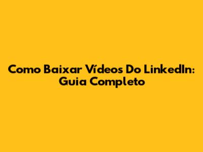 Como Baixar Vídeos Do LinkedIn: Guia Completo