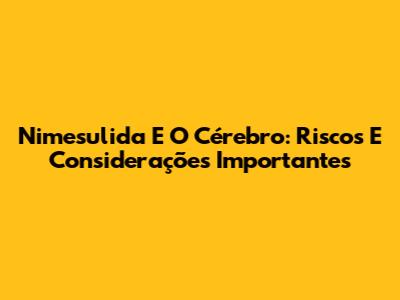 Nimesulida E O Cérebro: Riscos E Considerações Importantes