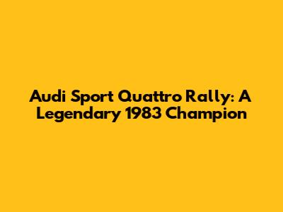 Audi Sport Quattro Rally: A Legendary 1983 Champion