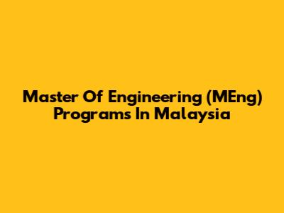 Master Of Engineering (MEng) Programs In Malaysia