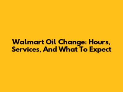 Walmart Oil Change: Hours, Services, And What To Expect