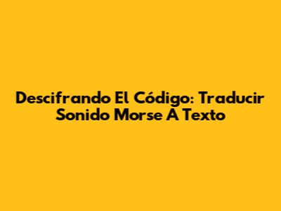Descifrando El Código: Traducir Sonido Morse A Texto