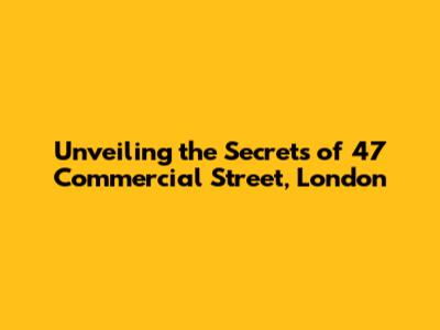 Hey guys! Ever wondered about the buzz around 47 Commercial Street, London? It's a spot that's got everyone talking, and for good reason! This iconic location is a hub of activity, history, and a whole lot of charm. Whether you're a local, a tourist, or just someone with a curious mind, there's something fascinating to discover about this place. Let's dive in and explore the ins and outs of this amazing spot. We'll be chatting about the history, what's there now, and why it continues to captivate so many people. So, grab a cuppa, get comfy, and let's unravel the secrets of 47 Commercial Street!