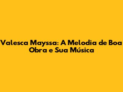 Valesca Mayssa: A Melodia De 'Boa Obra' E Sua Música
