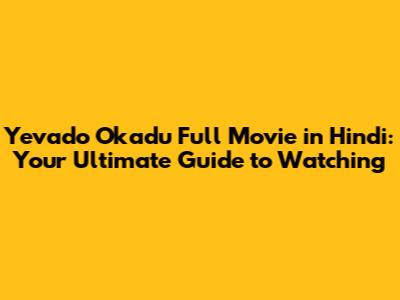 Where to Watch Yevado Okadu Full Movie in Hindi: Your Streaming Guide